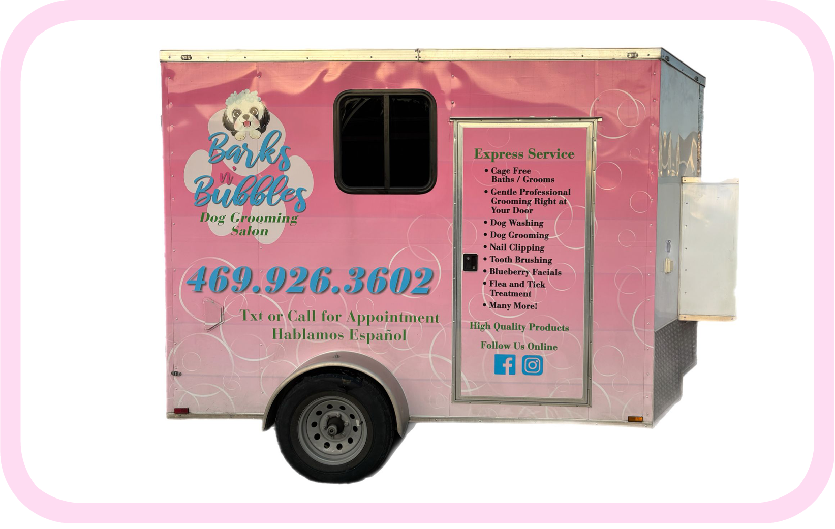 Barks n’Bubbles is your trusted partner in providing top-notch mobile dog grooming services right at your doorstep! With a passion for pets and a commitment to excellence, our team of experienced groomers is dedicated to pampering your furry friends with care and precision.